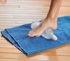 Con la botella congelada, nos sentaremos en una silla y la colocaremos debajo de un pie moviéndola de delante hacia atrás, jugando con ella por toda la planta del pie, favoreciendo aparte de un gran alivio el estiramiento de toda esta zona. Si fuera necesario colocaremos un trapo no muy grueso entre el pie y la botella. Ten en cuenta que no es aconsejable estar más de 10 min seguidos en cada pie.